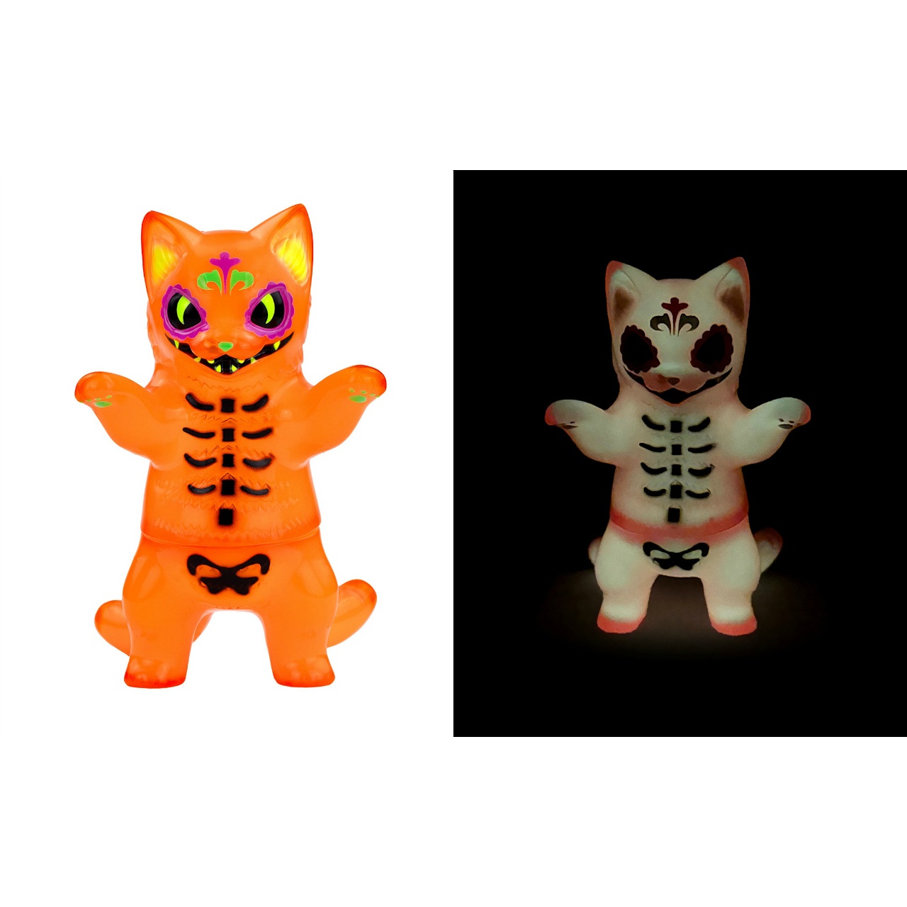 透明オレンジの内側が蓄光の2重成形になっているので暗闇で光ります。