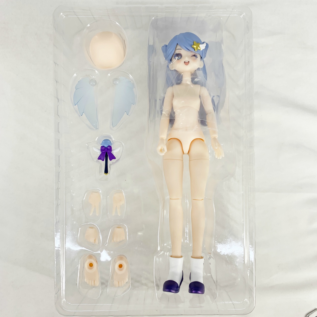 【1個】ドール本体(組み立て済み、フェイス塗装有、ボディー塗装無)+衣装セット+付け替えハンドパーツ×2組+付け替え足パーツ×1組+誕生日カード入り